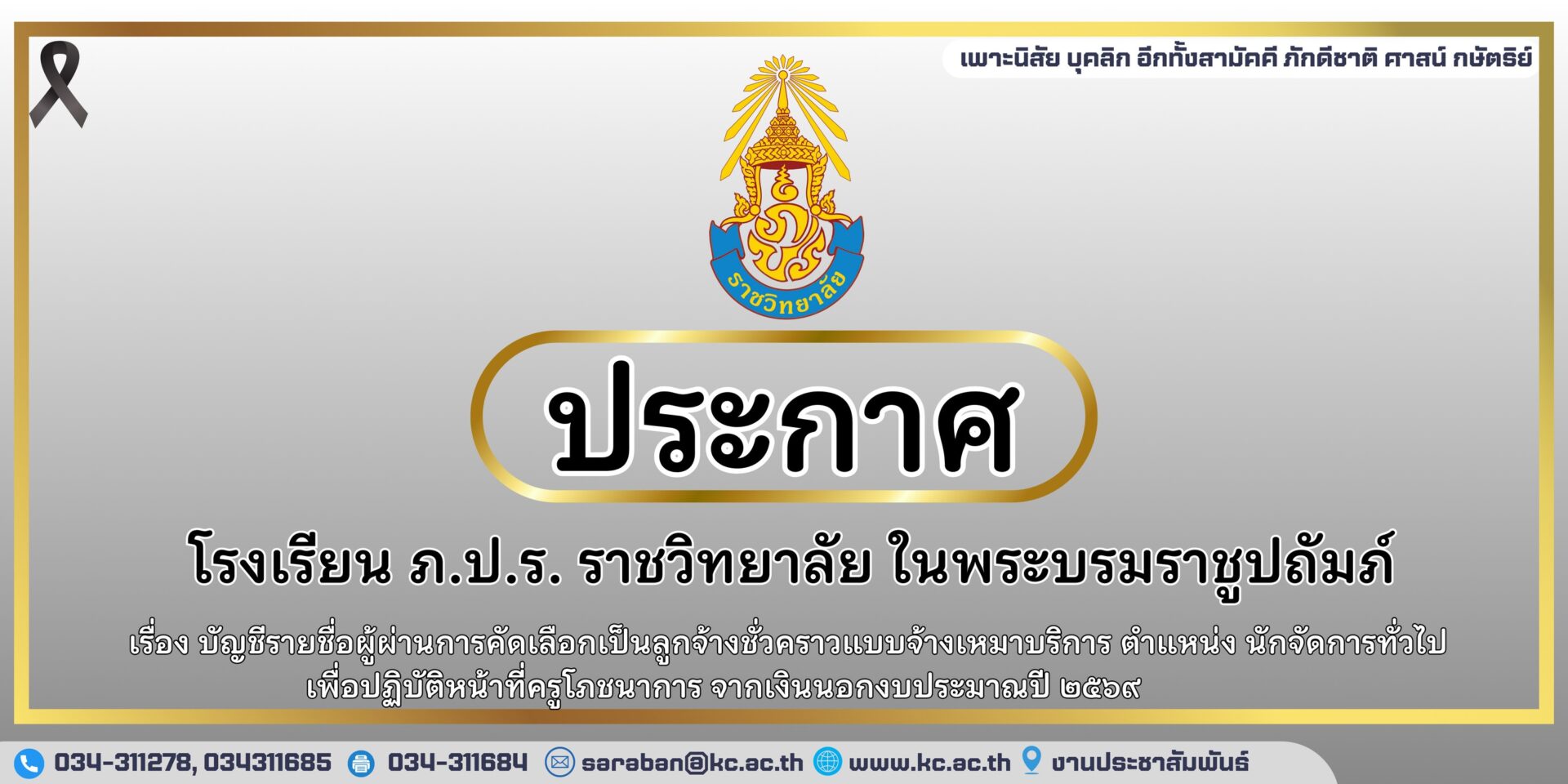 ข้าพระพุทธเจ้า คณะผู้บริหาร คณะครู บุคลากรทางการศึกษา นักเรียนเก่า และนักเรียนปัจจุบัน โรงเรียน ภ.ป.ร. ราชวิทยาลัย ในพระบรมราชูปถัมภ์