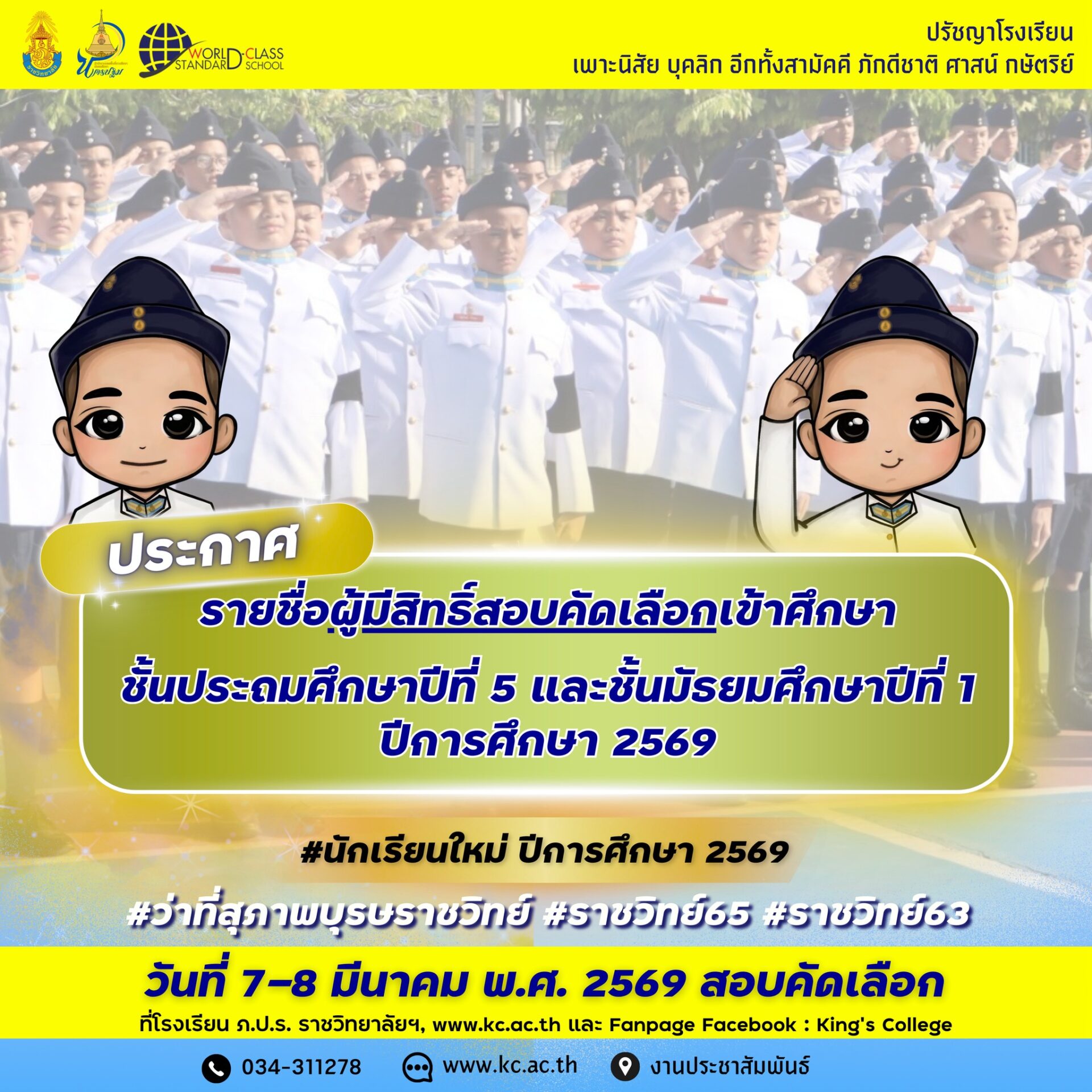 📣 ประกาศ โรงเรียน ภ.ป.ร. ราชวิทยาลัย ในพระบรมราชูปถัมภ์ ✨เรื่อง ผลการคัดเลือกนักเรียนเข้าศึกษาต่อ ระดับชั้นประถมศึกษาปีที่ ๕ และระดับชั้นมัธยมศึกษาปีที่ ๑ ปีการศึกษา ๒๕๖๙ ➡️คลิก 📌รายชื่อผู้ผ่านการคัดเลือกนักเรียนเข้าศึกษาต่อ ระดับชั้นประถมศึกษาปีที่ ๕ ปีการศึกษา ๒๕๖๙ ➡️คลิก เรื่อง ผลการคัดเลือกนักเรียนเข้าเรียนห้องเรียนโครงการห้องเรียน Intensive English Program ระดับชั้นประถมศึกษาปีที่ ๕ ปีการศึกษา ๒๕๖๙ ➡️คลิก 📌รายชื่อผู้ผ่านการคัดเลือกนักเรียนเข้าศึกษาต่อ ระดับชั้นมัธยมศึกษาปีที่ ๑ ปีการศึกษา ๒๕๖๙ ➡️คลิก ✅กำหนดการ วันเวลาและสถานที่ประกาศผลสอบ การรายงานตัวและการมอบตัว นักเรียนชั้นประถมศึกษาปีที่ ๕ และชั้นมัธยมศึกษาปีที่ ๑ ➡️ คลิก Click me!✅ ใบแจ้งการชำระเงินค่าบำรุงการศึกษา ป.5 ➡️ คลิก ✅ ใบแจ้งการชำระเงินค่าบำรุงการศึกษา ป.5 (ห้องเรียน IEP) ➡️ คลิก Click m✅ ใบแจ้งการชำระเงินค่าบำรุงการศึกษา ม.1 ➡️ คลิก e! ✅ รายละเอียดค่าบำรุงการศึกษา ปีการศึกษา ๒๕๖๙ ➡️ คลิก