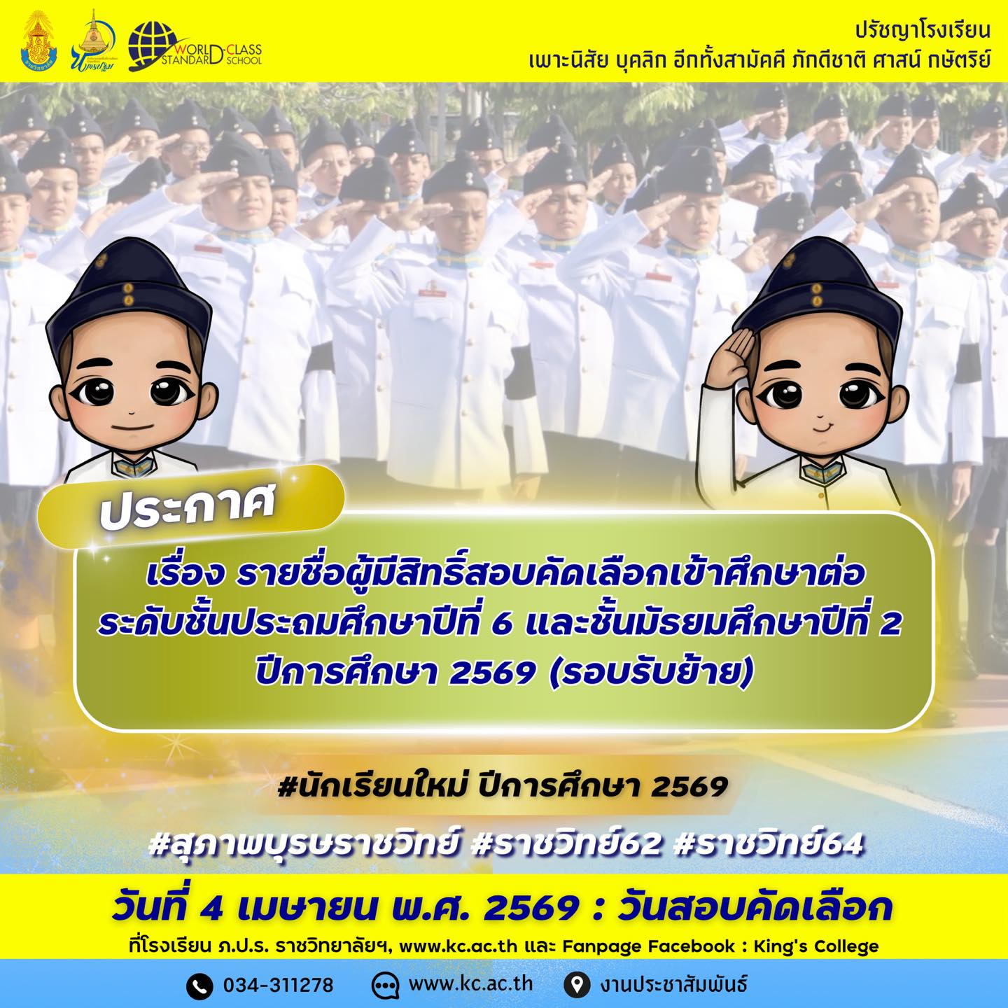 📣 ประกาศ โรงเรียน ภ.ป.ร. ราชวิทยาลัย ในพระบรมราชูปถัมภ์ ✨เรื่อง ผลการรับย้ายนักเรียนเข้าศึกษาต่อระหว่างชั้น ระดับชั้นประถมศึกษาปีที่ ๖ และระดับชั้นมัธยมศึกษาปีที่ ๒ (รอบรับย้าย) ปีการศึกษา ๒๕๖๙➡️คลิก 📌รายชื่อผู้ผ่านการคัดเลือกนักเรียนเข้าศึกษาต่อ ระดับชั้นประถมศึกษาปีที่ ๖ ปีการศึกษา ๒๕๖๙ ➡️คลิก 📌รายชื่อผู้ผ่านการคัดเลือกนักเรียนเข้าศึกษาต่อ ระดับชั้นมัธยมศึกษาปีที่ ๒ ปีการศึกษา ๒๕๖๙ ➡️คลิก ✅กำหนดการ การรายงานตัวและการมอบตัว นักเรียนชั้นประถมศึกษาปีที่ ๖ และชั้นมัธยมศึกษาปีที่ ๒ ➡️ คลิก ✅ ใบแจ้งการชำระเงินค่าบำรุงการศึกษา ➡️ คลิก ✅ รายละเอียดค่าบำรุงการศึกษา ปีการศึกษา ๒๕๖๙ ➡️ คลิก
