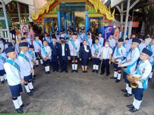 วงโยธวาทิต โรงเรียน ภ.ป.ร. ราชวิทยาลัย ในพระบรมราชูปถัมภ์ ร่วมพิธีเปิดการแข่งขันเรือยาวประเพณี ชิงถ้วยพระราชทานฯ ณ วัดไร่ขิง พระอารามหลวง