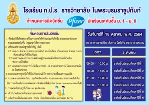 นักเรียนชั้นมัธยมศึกษาปีที่ 1 – 6 เข้ารับการฉีดวัคซีน Pfizer ตามนโยบายของกระทรวงศึกษาธิการ