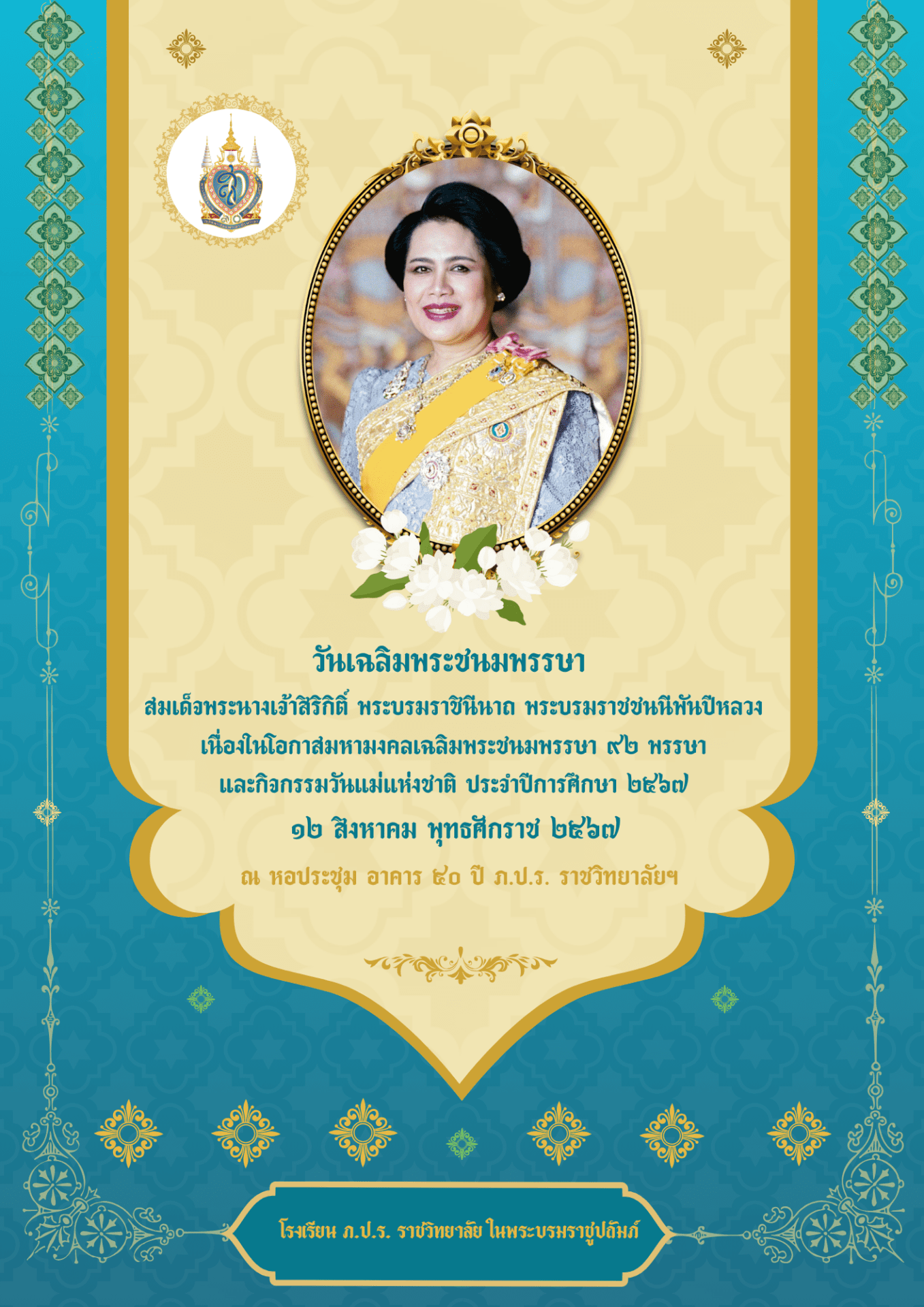 สูจิบัตรพิธีวันเฉลิมพระชนมพรรษา สมเด็จพระนางเจ้าสิริกิติ์ พระบรมราชินีนาถ พระบรมราชชนนีพันปีหลวง ประจำปีการศึกษา ๒๕๖๗