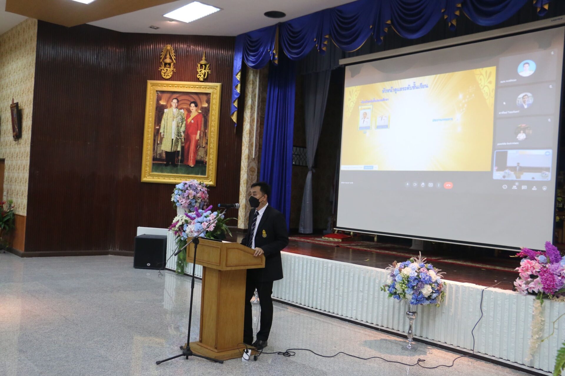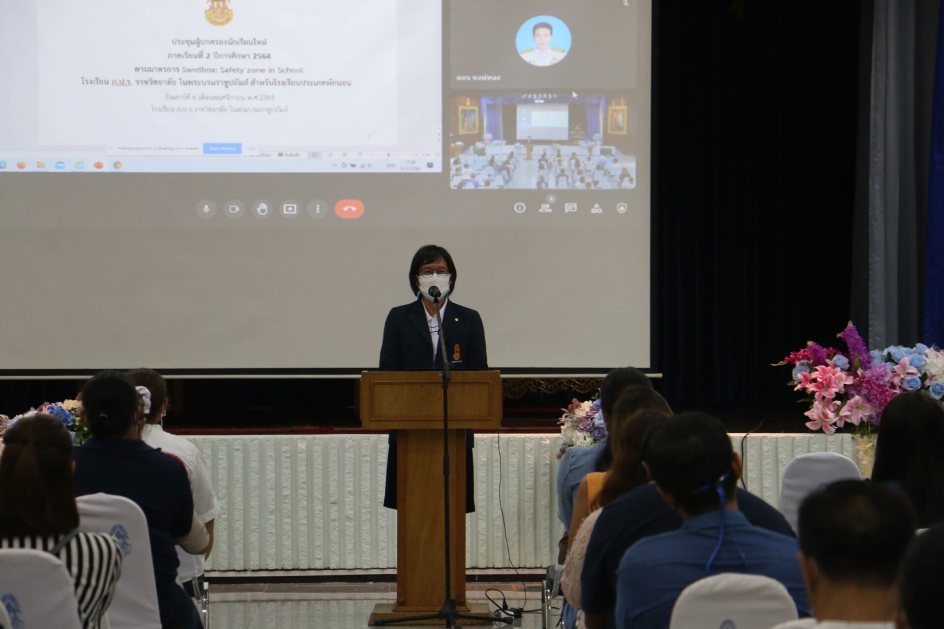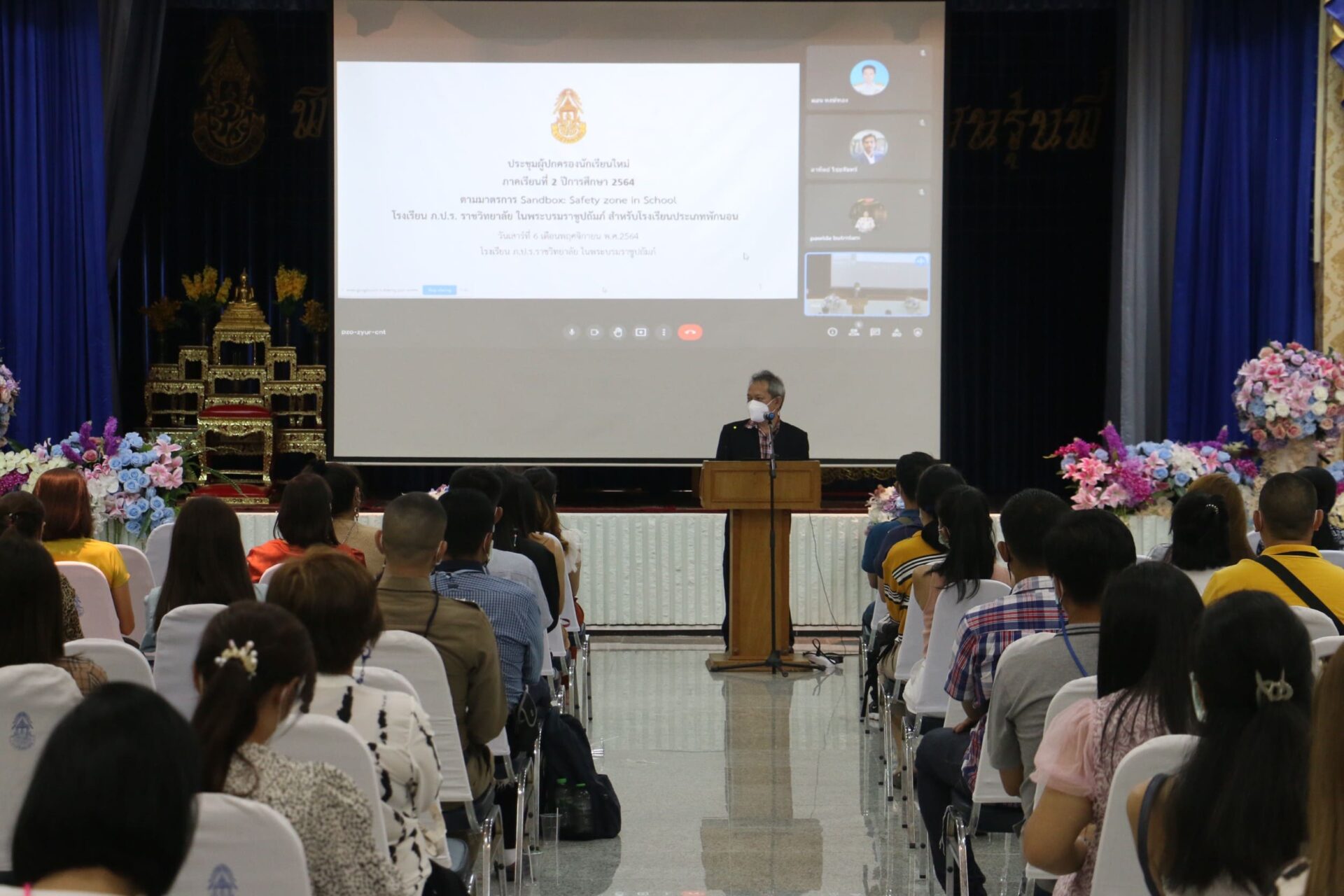 โดย นายอรรฐพนธ์ ศรีโพธิ์ ผู้อำนวยการ โรงเรียน ภ.ป.ร. ราชวิทยาลัย ในพระบรมราชูปถัมภ์ พร้อมด้วยคณะผู้บริหาร คอยกำกับดูแล ณ ลานพระบรมรูป และประชุมผู้ปกครอง ณ หอประชุม โรงเรียน ภ.ป.ร. ราชวิทยาลัย ในพระบรมราชูปถัมภ์