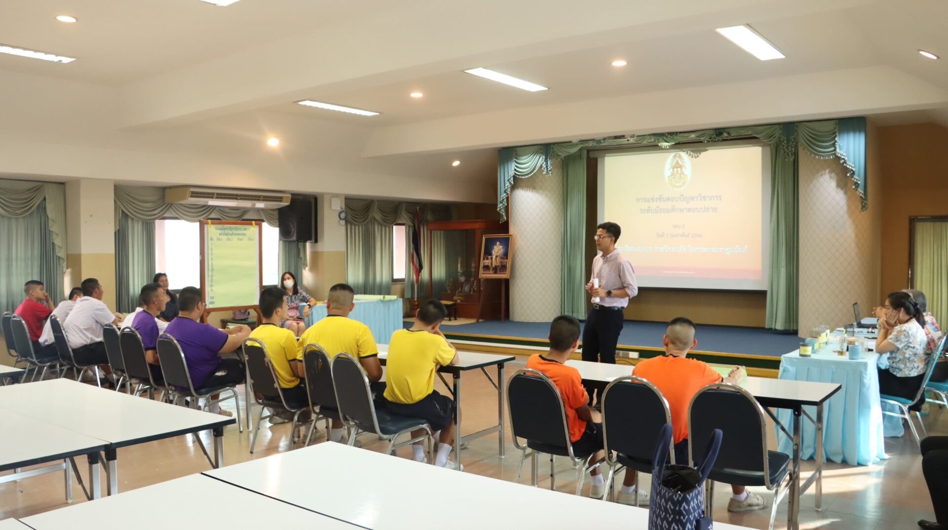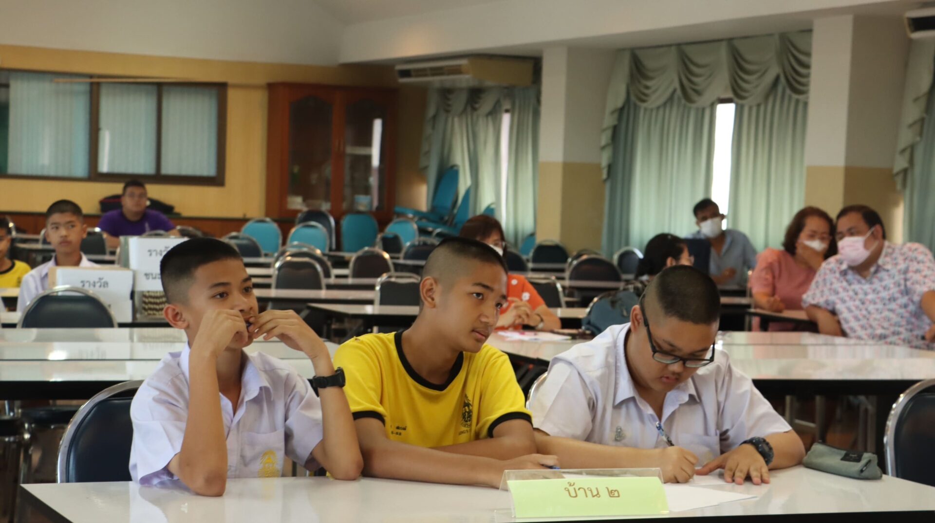 ในการนี้ นางสาวจารุณี สอนใจ รองผู้อำนวยการกลุ่มบริหารวิชาการ เป็นประธาน โดยมีคณะคุณครูและนักเรียน ร่วมให้กำลังใจนักเรียนที่ทำการแข่งขัน