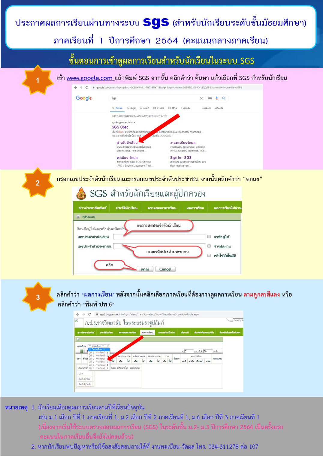ระบบประกาศผลการเรียน SGS (สำหรับมัธยมศึกษา) ภาคเรียนที่ 1 ปีการศึกษา 2564 (คะแนนกลางภาคเรียน)