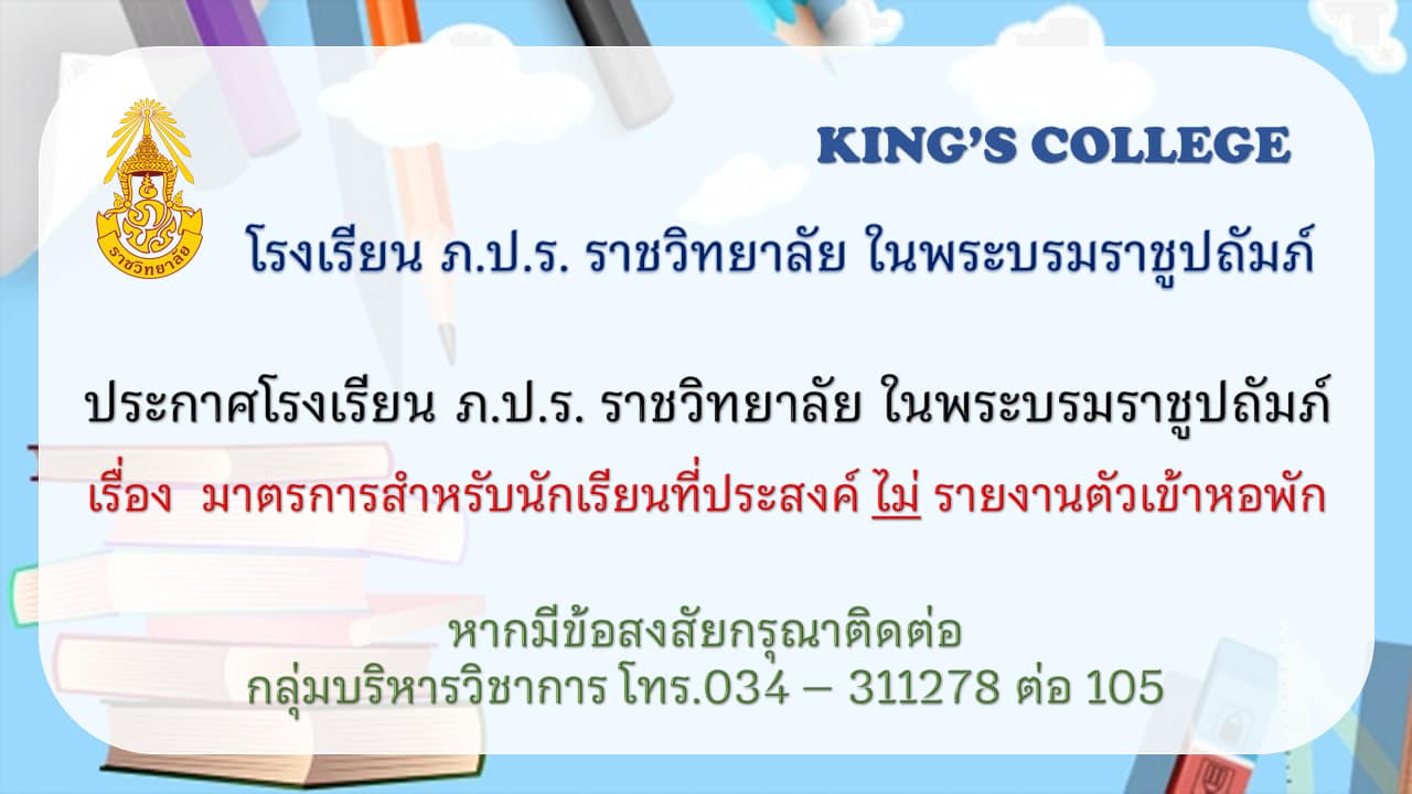 ประกาศโรงเรียน ภ.ป.ร. ราชวิทยาลัย ในพระบรมราชูปถัมภ์ เรื่อง มาตรการสำหรับนักเรียนที่ประสงค์ ไม่ รายงานตัวเข้าหอพัก